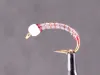 An ice cream cone style Chironomid pattern. This version is tied for use at Pyramid Lake, NV. Size the hook, bead and wire for your local fishery.