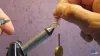 Tying a caddis pupa with a strand of raffia and two-colors shoes arctic hare on a Tiemco 2487 hook size 10 (audio in spanish)
