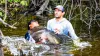 Arapaima eats fly off surface