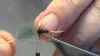 Hook: Grip 14723BL #14, Thread: Benecchi 12/0, olive, Wing: Deer hair (see note), Body: Tying thread, Tail/shuck: Bronze mallard barbs; Z-lon, pale silver - tied short Shellback,: Continuation of t