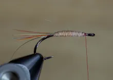 The original has a little flash in the tail and has a shiny silver rib, but for even more stealth you can leave out the flash and use a dull or almost invisible rib like mono or copper wire.