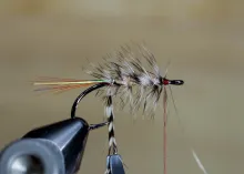 Also, the original recipe lists cat or muskrat wool as the body dubbing. For those of us who don’t have a pet cat (or muskrat) in a suitable color, most types of dull tan or gray dubbing can be used. Hare, rabbit, squirrel or most other natural dubbing, and of course a host of synthetic types in the proper hues. Just make sure you use a dubbing that doesn’t repel water, because this fly is a slow sinker as it is with its light hook and generous hackles, and adding dry fly dubbing will almost make it float – or at least sink really, really slowly… like really.