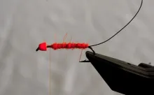 Rubber legs and a zonker... in orange. The Ronker is a fly for deep dwelling trout, featuring some weight bright colors, mobile materials and not least rubber legs.