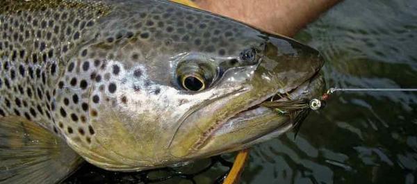 GUIDE ANDAH AKAGHAR DISPLAY A BIG BROWN. STRUNZO RIVER.
